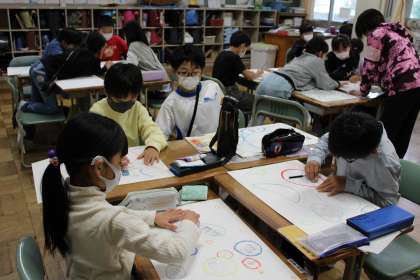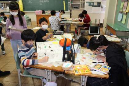 3年1組と2組は図工です。絵を仕上げています。5年生は、かおフェスの練習中です。雰囲気が出てきました。