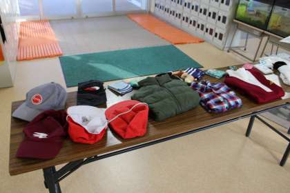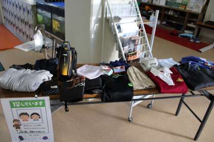 2年生の懇談会の様子です。昇降口前におかれた子どもたちの落とし物です。ご覧いただてたでしょうか。持ち主に無事戻るといいのですが。