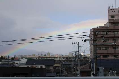 校舎から見えた虹です。すみれ学級は間違い探しに夢中です。