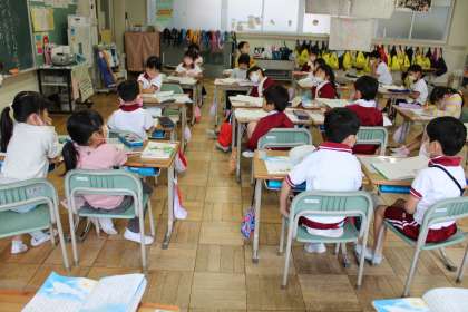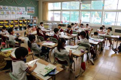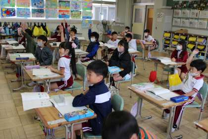 1年1組は国語です。くじらぐもも終盤です。読みを味わっています。1年2組は算数の様子です。