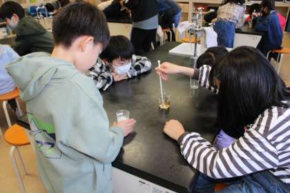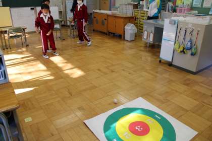 5年1組は理科の様子です。物の溶け方の学習です。6年1組も理科の様子です。グリグリとハンドルを回してエネルギーを発生させています。すみれ学級はボッチャのようなゲームに挑戦中です。