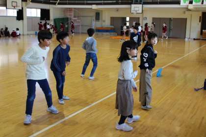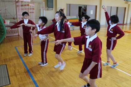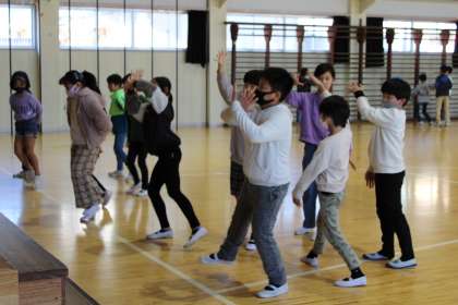 4年生は体育館でリズムダンスの学習です。グループに分かれて様々な振り付けにチャレンジです。