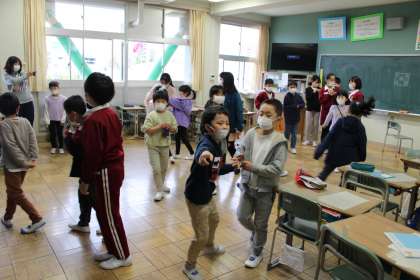 自己紹介が終わったら、早速考えていたゲームを班ごとに楽しんでいます。