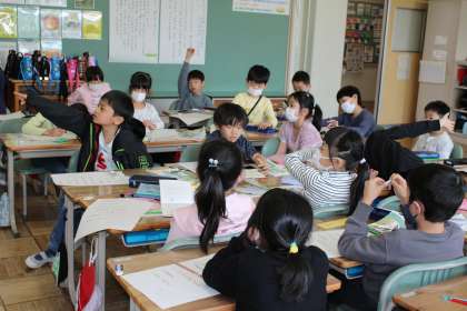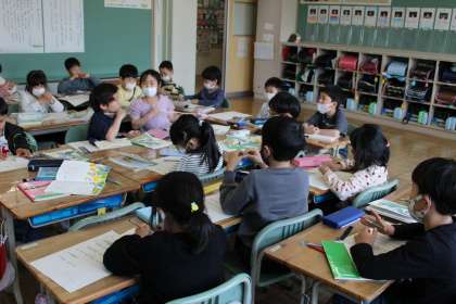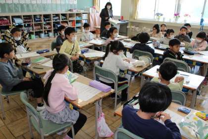 2年1組は国語の様子です。詩をみんなで読み味わいました。