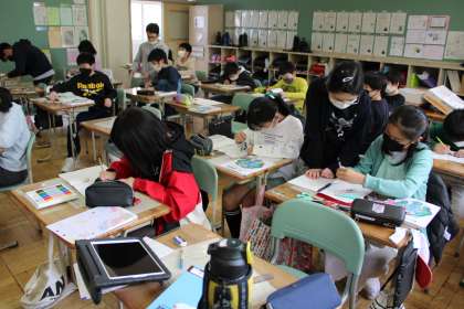 6年2組も6年1組も5年2組も算数の様子です。問題解決に向け一生懸命に取り組んでいます。