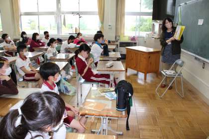 読み聞かせ、6年1組、6年2組、すみたん学級の様子です。
