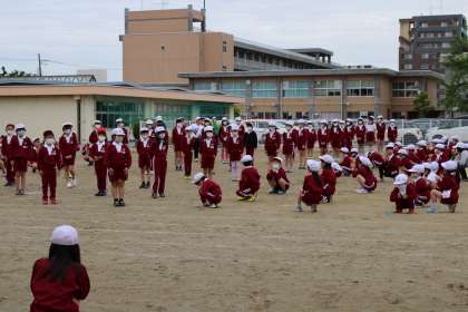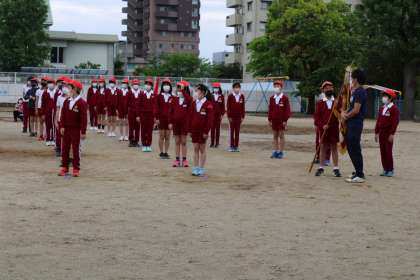いよいよ運動会全体練習が始まりました。まずは整列の仕方、開会式の練習です。