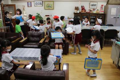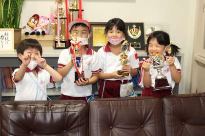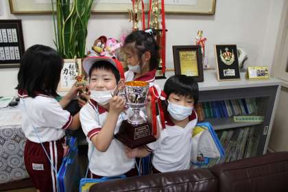 1年生は自分たちだけで学校探検です。計画通りに回れたでしょうか。校長室にもたくさんの来訪者が、いろいろと珍しそうに見たり触ったり座ったりと、興味津々でした。