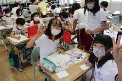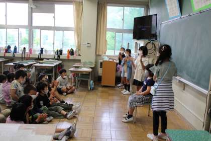 3年1組はお誕生会のようです。6年1組は図工です。お気に入りの場所を下書きしています。4年1組は係活動です。