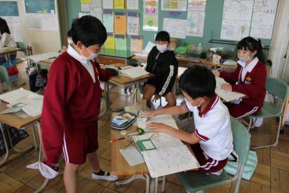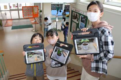 4年1組は算数です。5年生家で作った都道府県を表す作品見せてくれました。5年1組は理科で、植物の観察写真でこんな感じに保存しています。