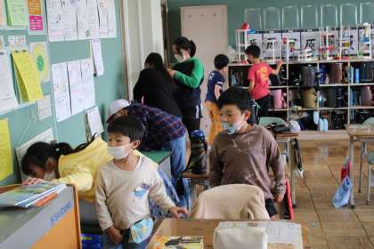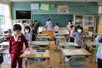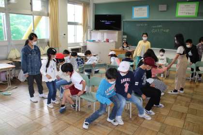 本日お昼休みの時間は、ふれあいタイムです。班ごとにいろいろな遊びを中心に活動です。1年生から6年生まで一緒に活動です。