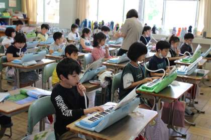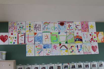 3年1組教室後ろに貼ってある合言葉です。音楽は鍵盤ハーモニカに挑戦です。「海風きって」を上手に演奏してくれました。