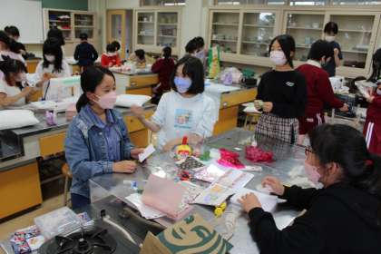 続きです。家庭科クラブ、外運動クラブの様子です。6年生全員揃っているクラブは卒業アルバム用写真を撮っています。