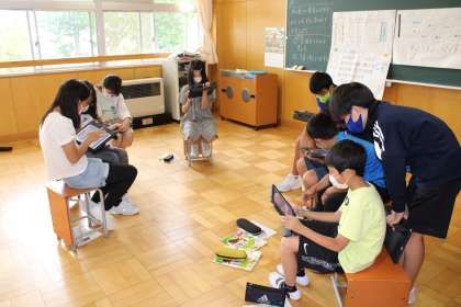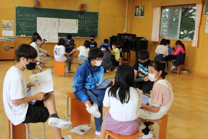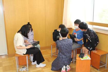 6年1組は音楽です。4分の4拍子のリズムを作っています。