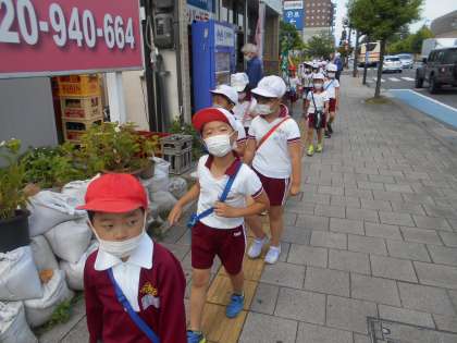 本日2年生は2回目の町探検です。今回は虎丸方面にお出かけです。全体で確認後いざ出発!!