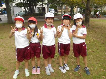 桜通り沿いに歩いて、途中、公園で休憩です。