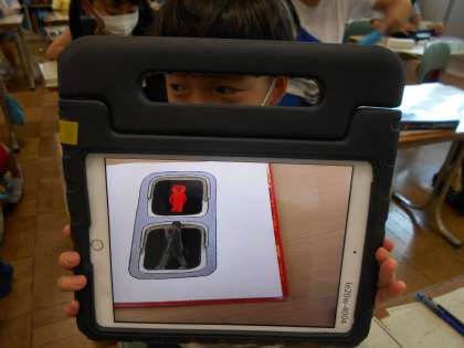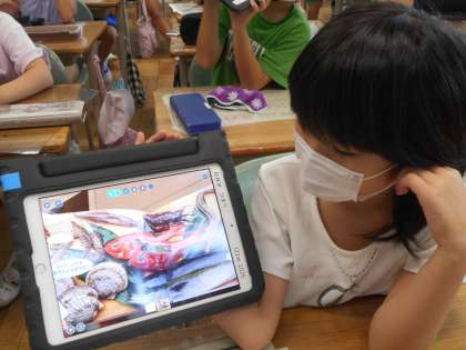 3年2組は図工でこの前撮った自分が入っている写真をみて、感想を書いています。おもしろい作品が多いです。