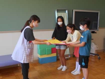 本日で栄養士の増子望先生最後の勤務となり、ZOOMでお別れの式の様子です。6年生からメッセージが手渡されました。お世話になりました。