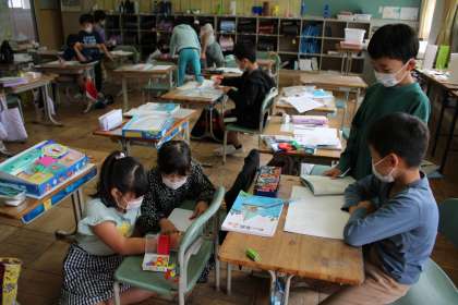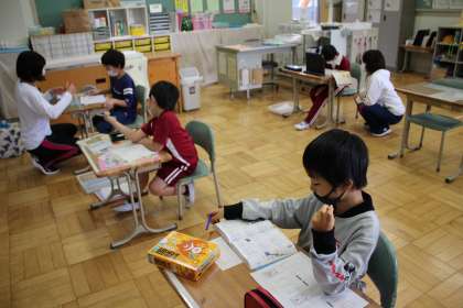 すみれ学級は各自それぞれの課題に取り組んでいます。2年2組は算数です。計算の仕方について考えています。