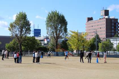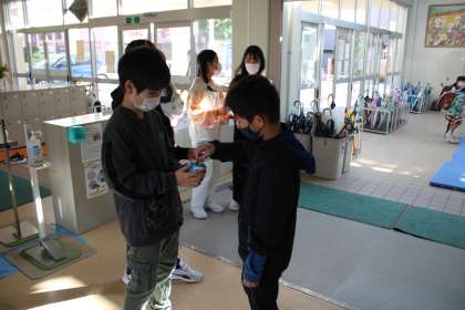 朝はボランティア委員会のメンバーは赤い羽根の共同募金を始めています。6年2組は朝校庭に出てみんなでなにやら盛り上がっています。