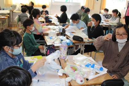 6年生はかおフェスの練習です。4年1組は理科です。空気の学習です。
