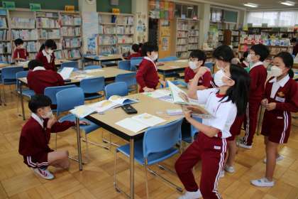 朝一で、芳山ソフトボールスポ少のメンバーが校長室に大会で好成績の結果を報告に来てくれました。おめでとうございます。1年生はかおフェスの練習です。3年2組は図書室で、1年生に読み聞かせをする準備です。