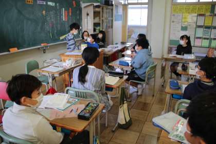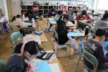 5年2組は図工で版画づくりです。4年1組は学級会、先日お世話になったダンスの先生にお礼を考えているようです。たんぽぽ学級見事にユリタン出来上がりました。
