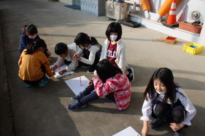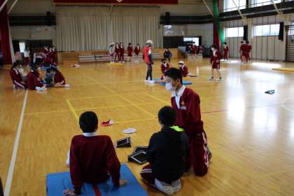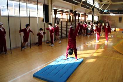 3年1組は理科です。太陽の動きの観察です。6年生はマット運動に挑戦です。