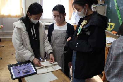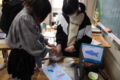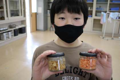 6年2組鯉プロジェクト、それぞれのグループで実際に試しに作っています。小物、マスコット、調理品です。