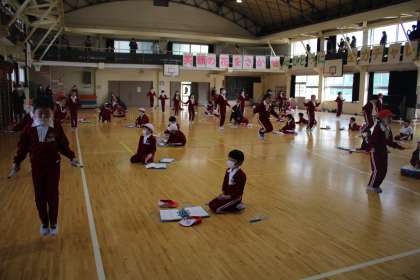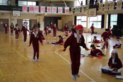本日3年生は縄跳び記録会です。多くの保護者の皆さんが見守る中、自己記録更新目指して頑張りました。