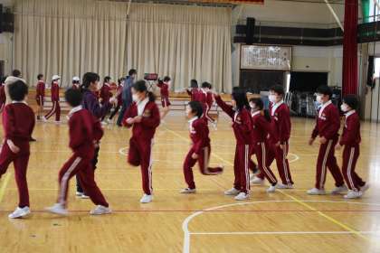 4年生続きです。学級ごとに気合を入れていよいよ本番です。いい感じに跳んでいます。