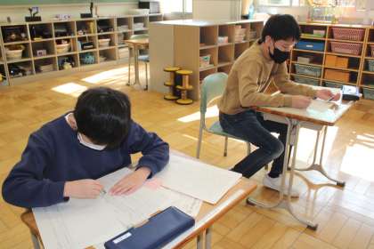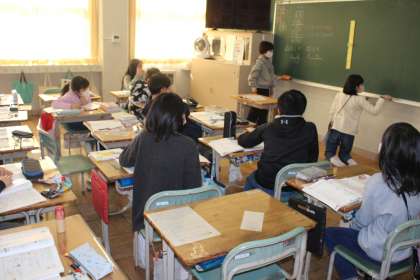 4年2組は算数です。小数のかけ算学んでいます。たんぽぽ学級ペットボトルのキャップ整理です。黙々と取り組んでいます。すみれ学級の6年生はお世話になった先生へお手紙を書いています。
