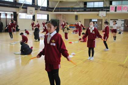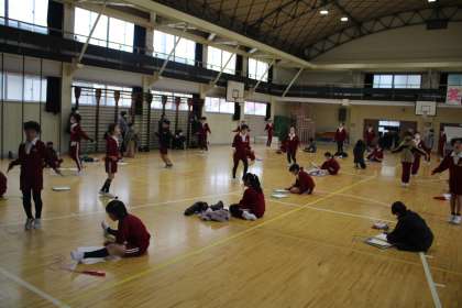 5年生は縄跳び記録会です。あいにくの雪の中ですが、応援に駆けつけて頂いた保護者の皆様ありがとうございました。自己新記録目指して本気で頑張っていました。