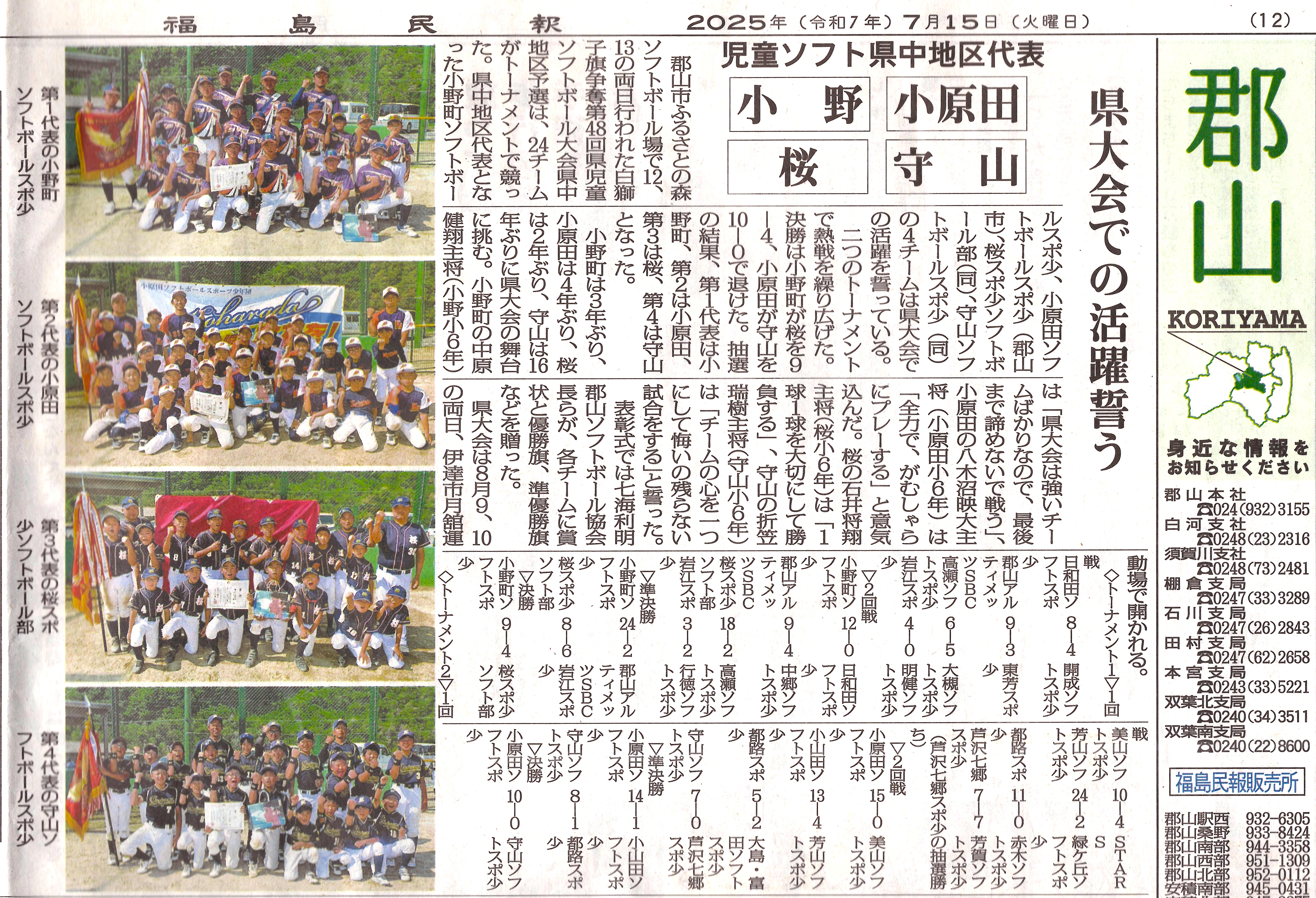 小原田っ子の活躍が新聞で取り上げられました。今回は、小原田ソフトボールスポーツ少年団の県大会出場の記事です。県大会での活躍を期待しています!