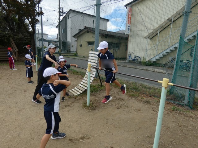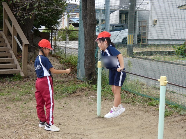 1年生、鉄棒じゃんけんに取り組む!