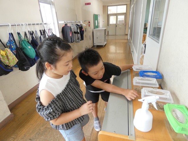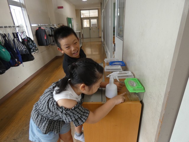 廊下を歩いていると、生き物を観察している3年生に会いました。カナチョロもいるそうです。私もカナチョロが大好きで、見つけると大喜びになってしまいます!