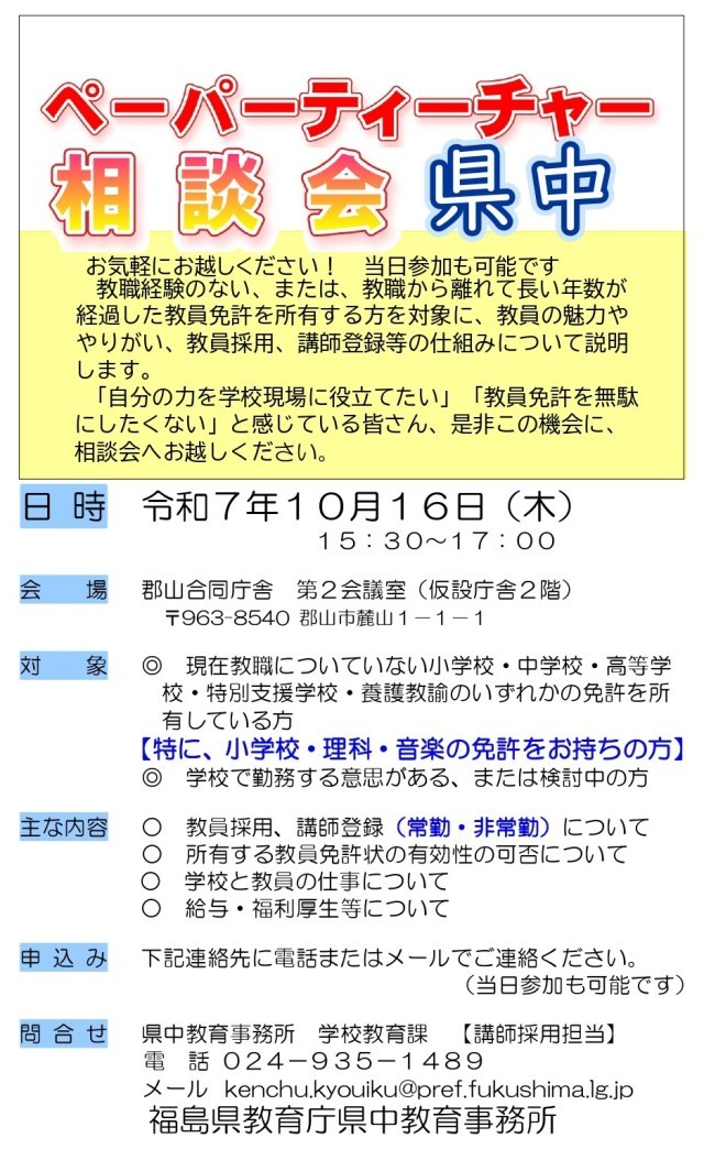 ぺーパーティーチャー相談会のお知らせ