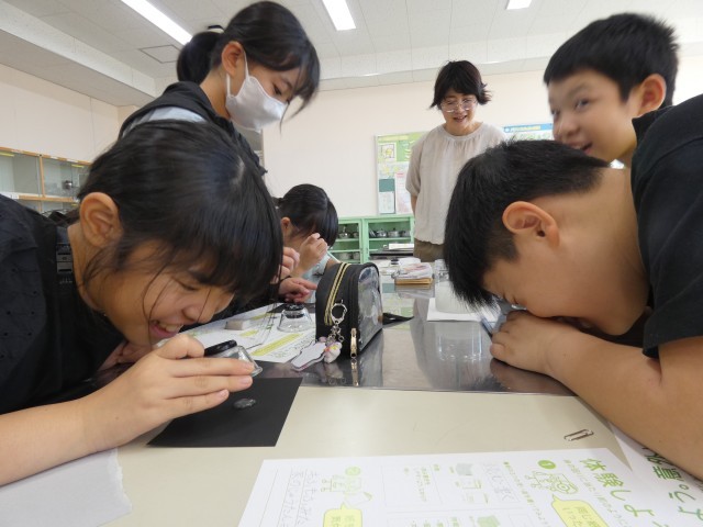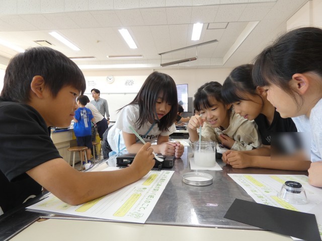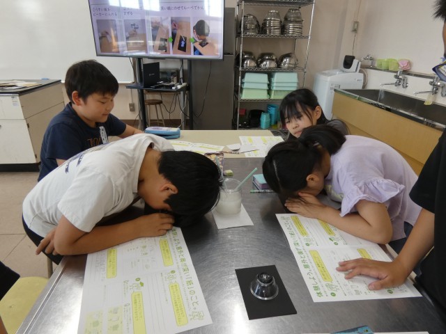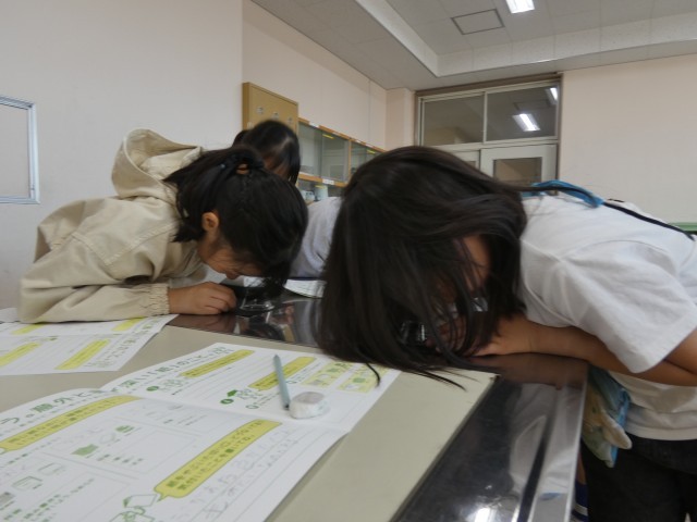 まず、紙がどのようにできているかを学んだ子どもたち! 子どもたちからは驚きの歓声があちらこちらからあがりました!