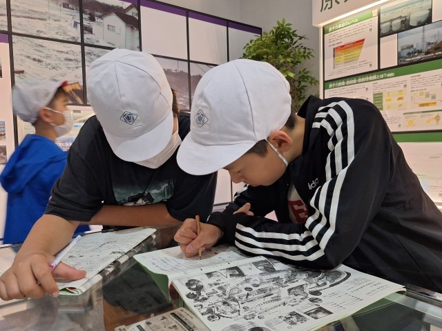 熱心に調べています。少しずつ震災のことが分かってきたようです。