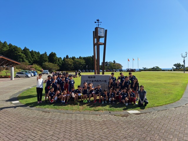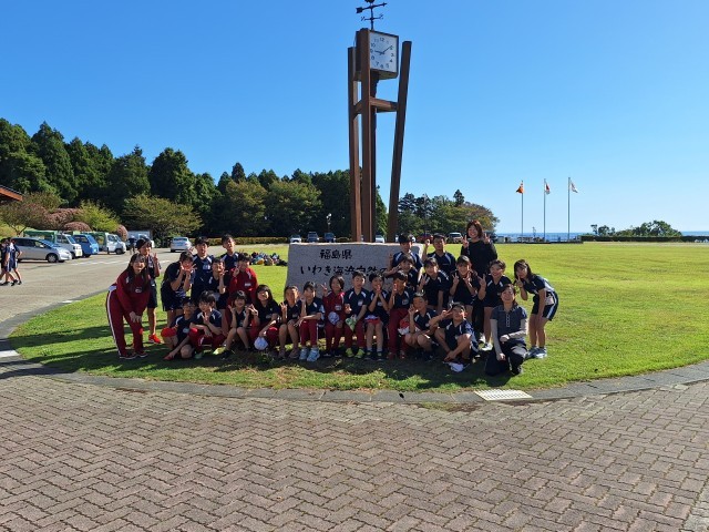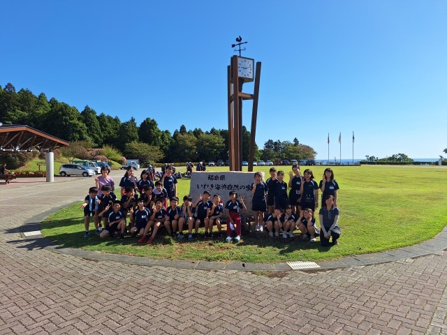 いわき海浜自然の家の前で集合写真です。みんな元気です!
