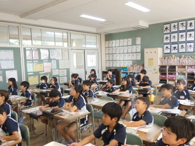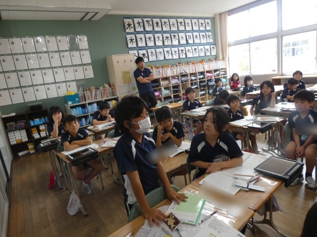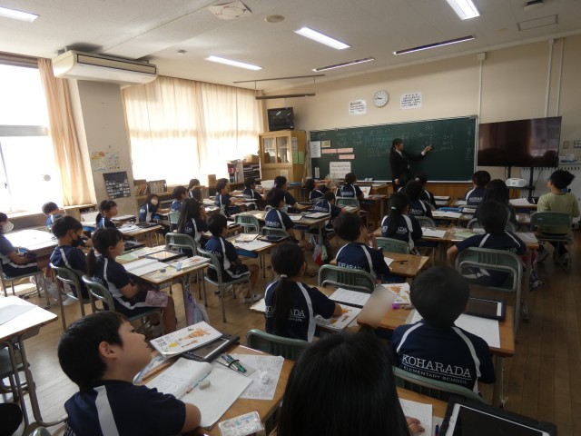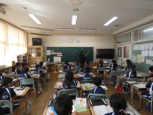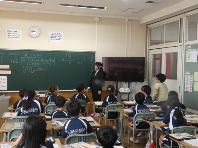 教育実習生3名が学んでいる小原田小。3年教室では、教育実習生が算数科の3桁×1桁のかけ算の仕方について授業をしていました。