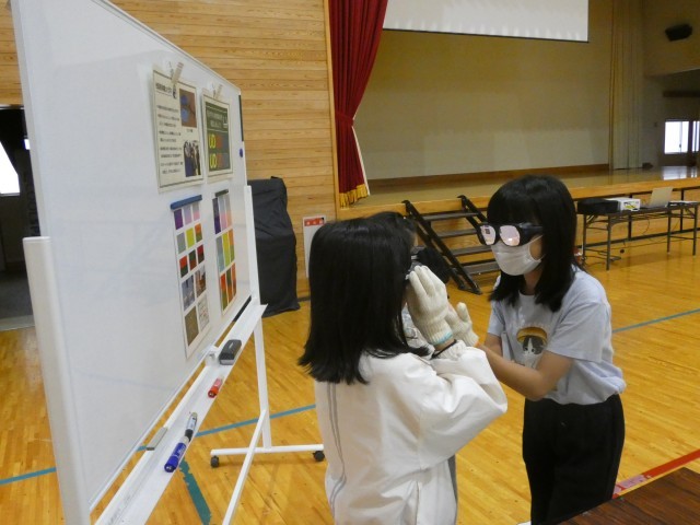 ユニバーサルデザインは、視力や聴力が少しずつ衰えた高齢の方々の歩行や、色の見え方が異なって見える方々の見え方、手先を器用に動かすことのできない方々の作業なども体験しました。現在、様々な状況にある人のことを知ることで、お互いに助け合っていく心も育てていきたいと考えています。