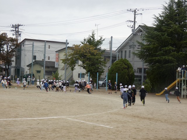 業間の時間に、2年生が持久走記録会に向けて練習に取り組みました。2年生、がんばっています!