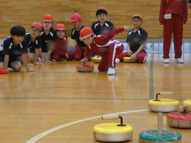 カーリングに熱中しました! 子どもたちの真剣な表情にご注目ください!