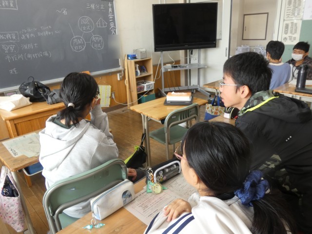 6年生がキャリア教育に取り組みました。公務員について学んでいる様子です。