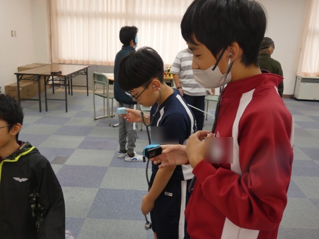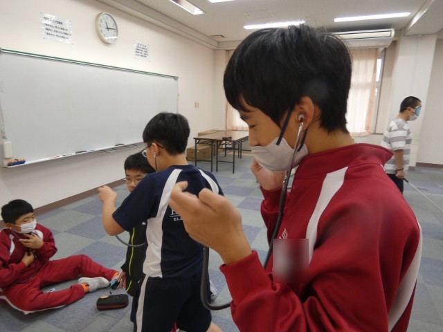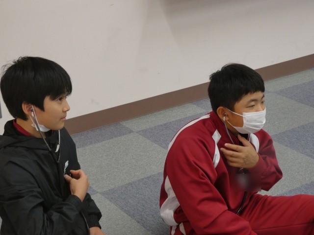 臨床工学士の方が使う器具について学び、実際に自分の心音を聴きました。