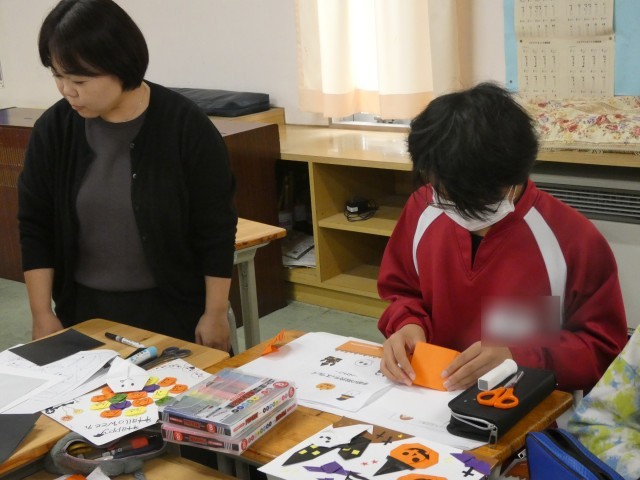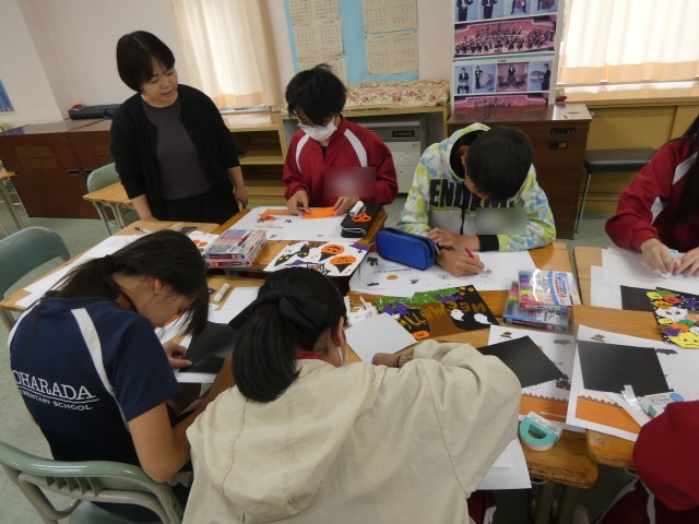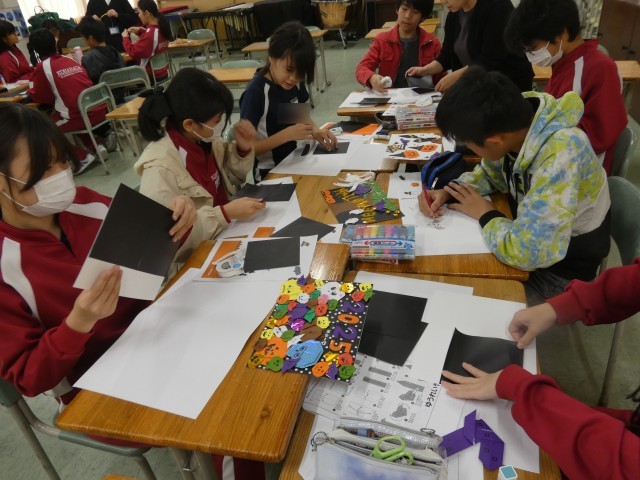 医療事務の仕事体験では、受付の方々の心を和ます季節のディスプレイづくりをしました。ちなみに教えてくださった方は、私の前任校の保護者の方でした。いつも支えてくださり、ありがとうございます。