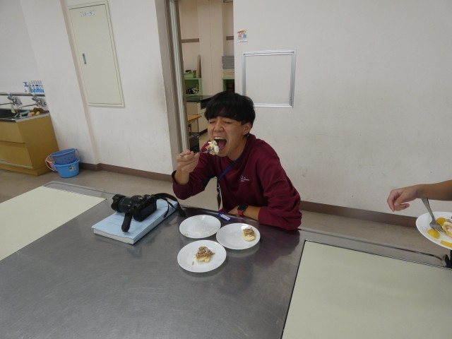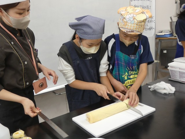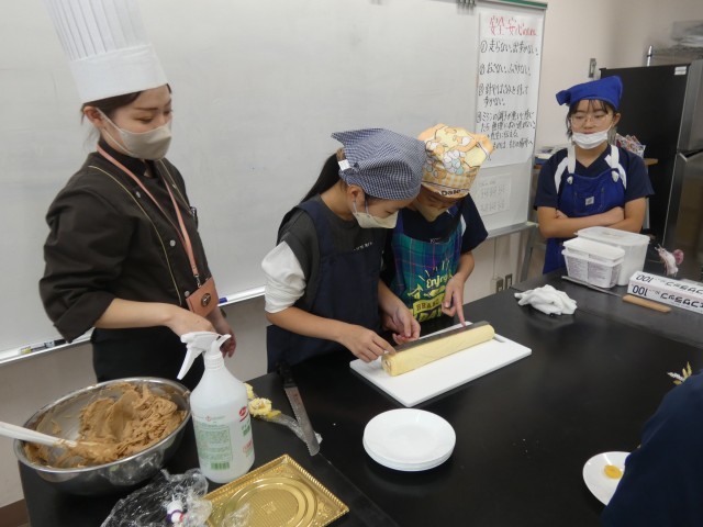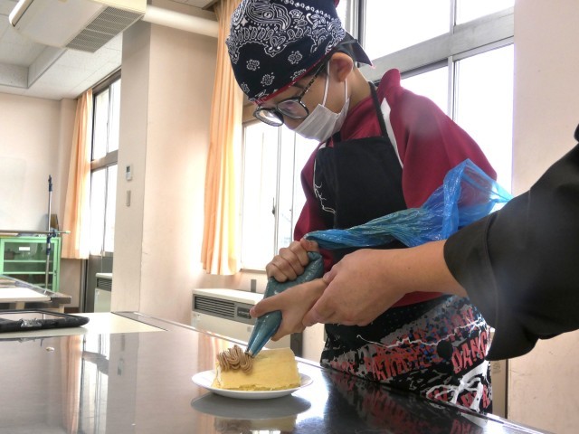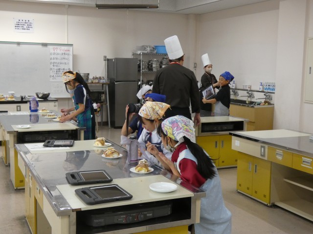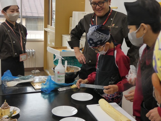 パティシエ体験では、実際に洋菓子作りにチャレンジしました。担任も絶賛の洋菓子ができました。