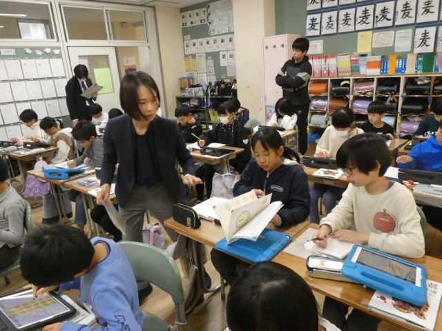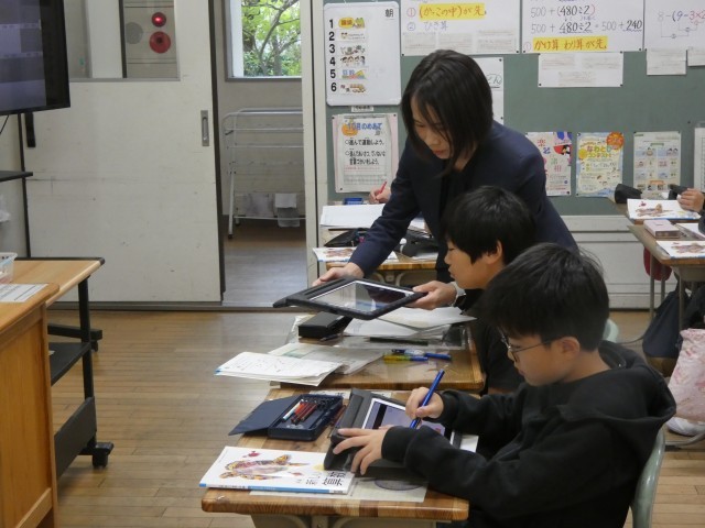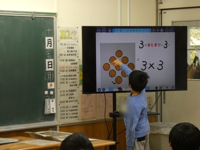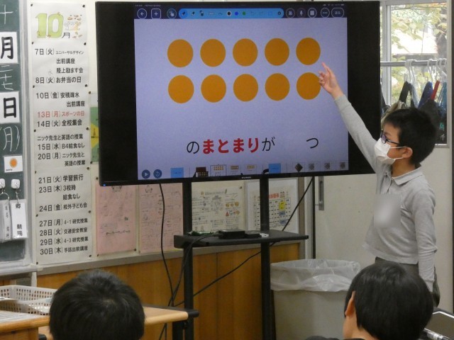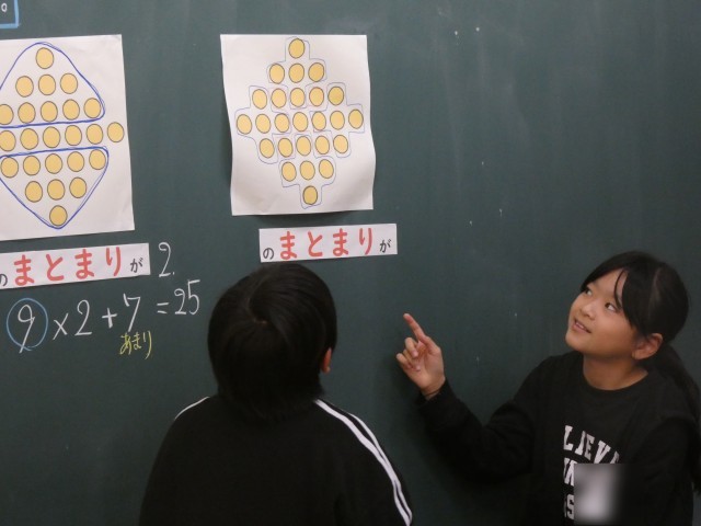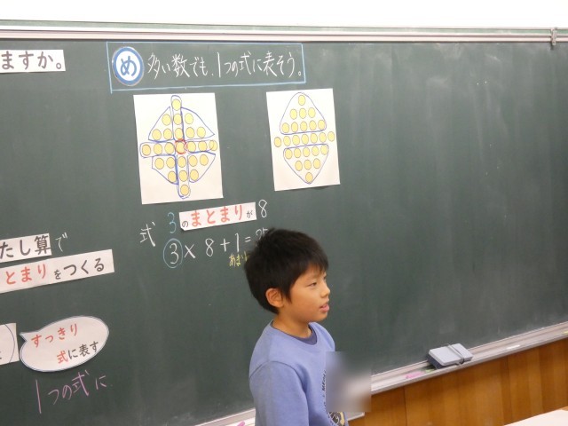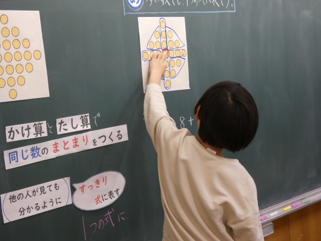 4年1組の算数科授業研究会の様子です。どのようなまとまりをつくるのか、子どもたちが気付くことができるように授業を組み立てました。