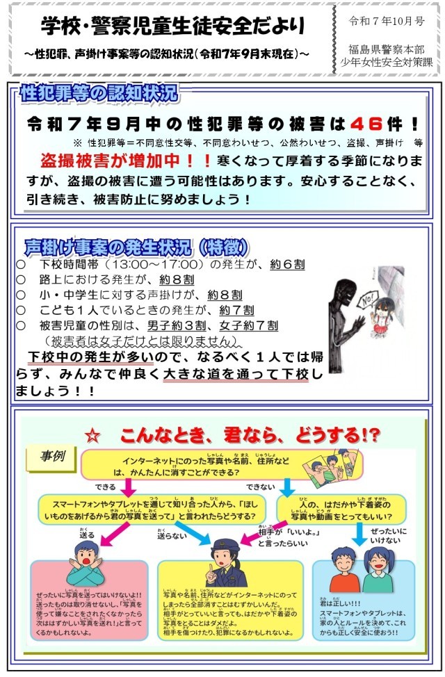 学校・警察児童生徒安全だより10月号について